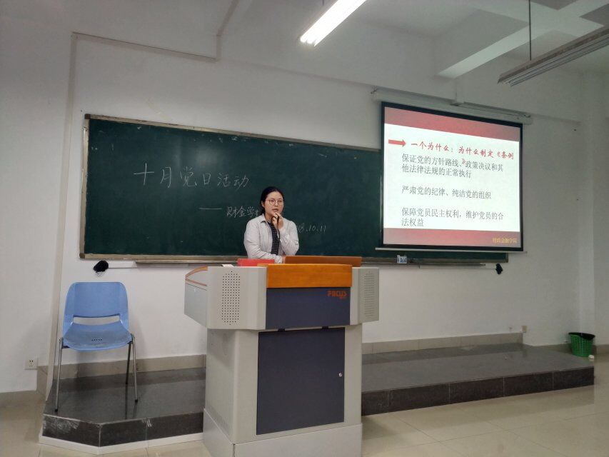 2018年10月11日下午,财政澳门信誉最好十大平台学生第一党支部在田家炳306召开了10月第一次党日活动。会议由秦杰同志主持,财金学生一支部书记文理以及16、17级共69名入党积极分子列席会议。本次活动的主要内容有:1.学习《中国共产党章程》第七、八章;2.学习《中国共产党纪律处分条例》第1—5章。