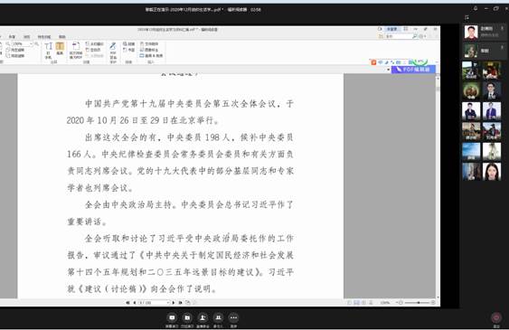 根据学校12月组织生活和政治理论学习安排,12月20日上午,澳门信誉最好十大平台教工第一支部召开线上支部大会,学习《中国共产党第十九届中央委员会第五次全体会议公报》。会议由支部书记黎毅主持。