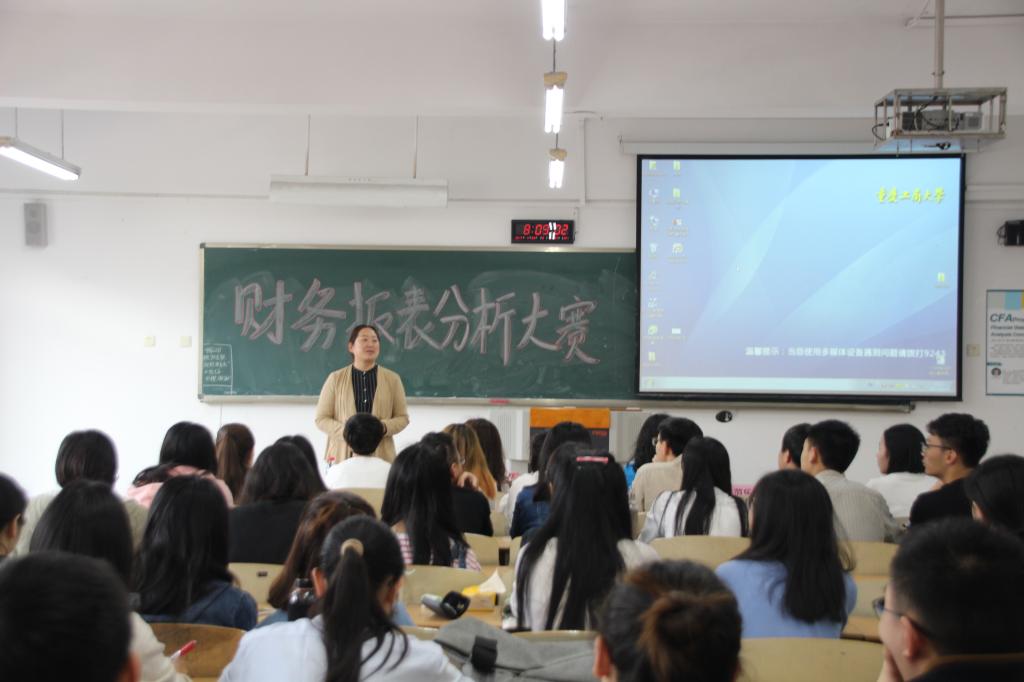 本次大赛首先由王兰副院长对本次大赛致了开幕词,并对选手们寄予殷切希望。随即主持人宣布比赛规则,本次财务报表大赛是分组陈述,2015级CFA的同学们一共被分为了8个小组,并通过了抽签决定比赛顺序,各组成员通过PPT向评委老师展示分析成果,陈述时间为15分钟,陈述后有5分钟的评委点评并打分。