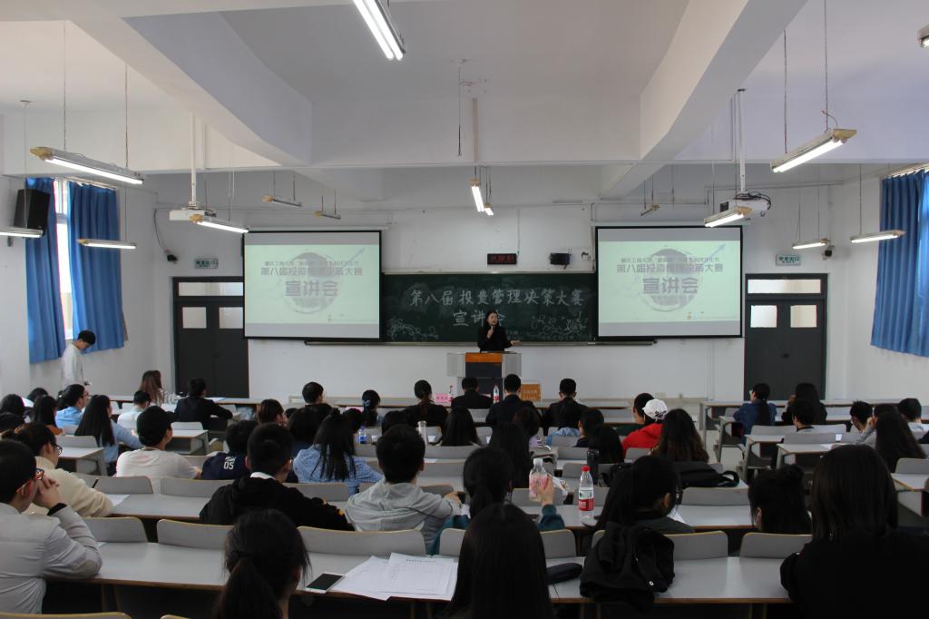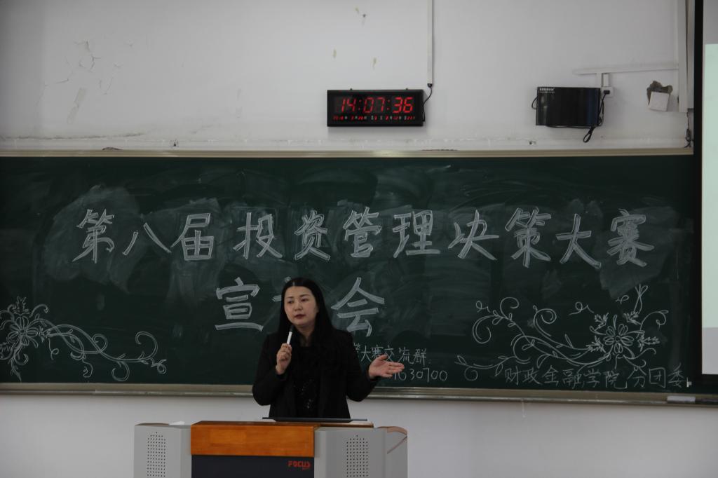 为响应“大众创业,万众创新”的号召,财政澳门信誉最好十大平台以校团委“第十六届‘新儒商’大学生科技文化节”活动为依托,于2018年3月16日下午两点在博智楼308成功举办了第八届投资管理决策大赛宣讲会。本次宣讲会邀请到了投资系老师陈晓莉老师、财政澳门信誉最好十大平台分团委书记徐阔老师以及财政学专业陈羲羲学长为同学们指导。
