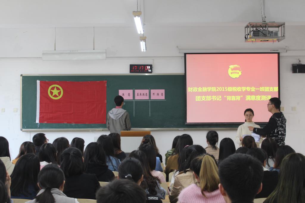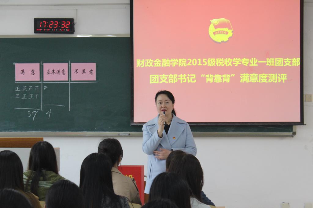 为夯实基层团支部群众基础,做好团支部建设工作,3月14日下午,澳门十大信誉网赌大全财政澳门信誉最好十大平台税收学专业2015级一班团支部在70202教室开展了对团支书刘菊同学的“背靠背”满意度现场集中测评。团市委高校工作部副部长、调研员李霞、校团委杨娟副书记、校团委陈琛老师到场观摩了此次测评。