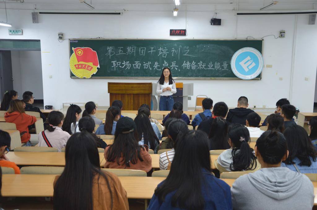此次团干培训以“职场面试先点兵,储备就业能量”为主题,以提升同学们的就业知识储备为出发点,以同辈帮扶为出发点,邀请了在假期进行了实习的同学,从不同的角度,为大家分享了关于面试、实习和自我准备等就业相关的经历。活动现场,来自财金学院的陈露等不同专业的三位同学依次为大家讲述了他们的面试和实习经历,并分享了自己的经验成果。他们以自我经历为依据,从简历制作的细节把控、面试现场的应对小技巧,到自己对银行实习过程的领悟,他们都一一为大家讲述。“不管你实习做的事情是大是小,它们总会在不经意间体现出作用”,陈露同学向大家说道。不管是客观细节,还是对自我的调节,他们的分享都让现场的同学们了解了更多,收获了一定的经验。