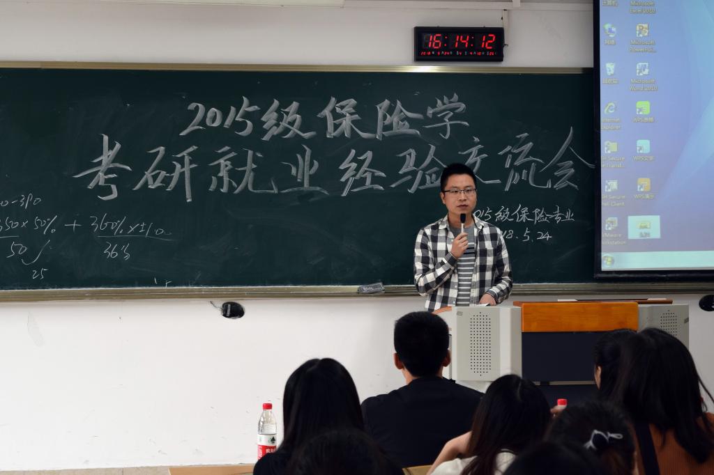 对于当前严峻的社会形势和繁重的就业压力,即将步入大四和面临毕业的同学们,有着各种各样的考虑和选择——考研、出国或就业。但不少人对于以上选择方向仍存在误区、不解、甚至是困惑,这些将会影响到同学们的日常学习和生活,甚至身心健康。为了帮助大家看清形势,解除疑惑,端正态度,明确未来发展方向及掌握更多的信息。澳门十大信誉网赌大全财政澳门信誉最好十大平台保险系于2018年5月24日在七教201教室举办了“考研就业经验分享交流会”。
