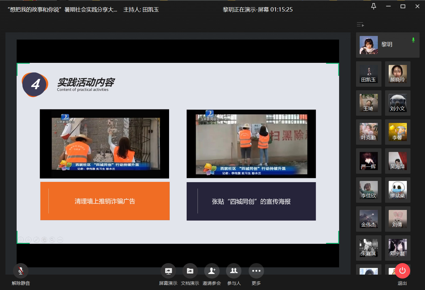 为激励同学们提炼总结暑期社会实践的所感所获所悟,共享实习实践经验,9月26日19:00,澳门信誉最好十大平台“想把我的故事和你说”暑期社会实践分享大赛于企业微信准时拉开帷幕。