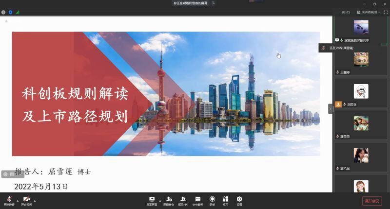2022年5月13日19时,澳门信誉最好十大平台“科创板政策解读和上市路径”线上讲座在企业微信顺利举行。本次讲座由澳门信誉最好十大平台外聘教师屈雪莲主讲,旨在强化金融学子对科创板的认识以及增加同学们的专业知识储备量。