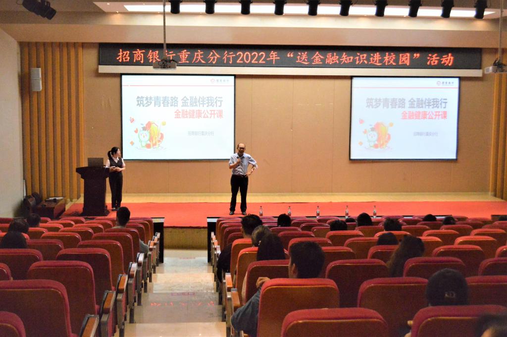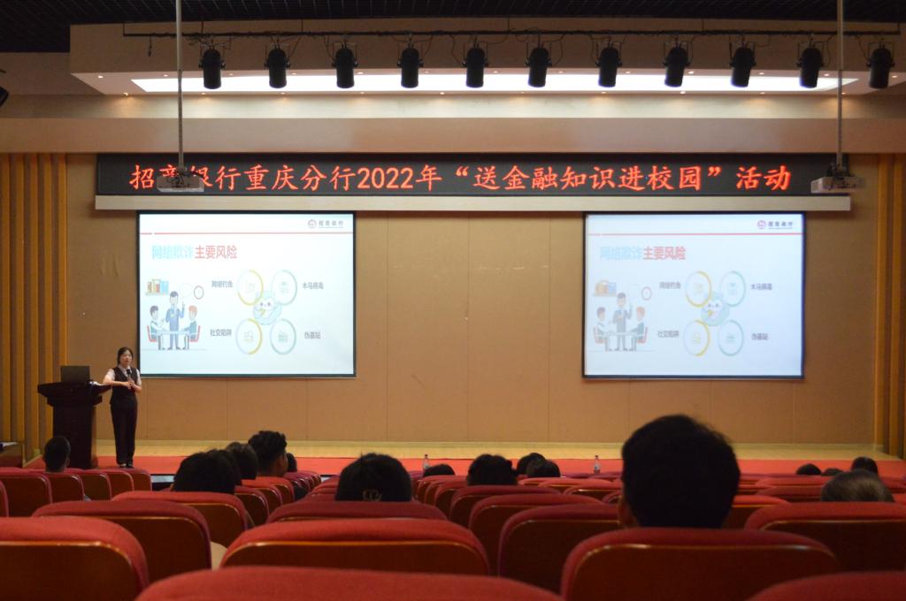 为普及金融知识,提升大学生金融风险防范意识和金融安全意识,2022年6月17日上午10:30,澳门信誉最好十大平台携手招商银行重庆分行在田家炳209报告厅开展2022年“送金融知识进校园”活动。招商银行南岸学府支行主管徐艾、招商银行重庆分行人力资源部李馨怡分别开展宣讲。澳门信誉最好十大平台党委书记、副院长王建明出席了活动。