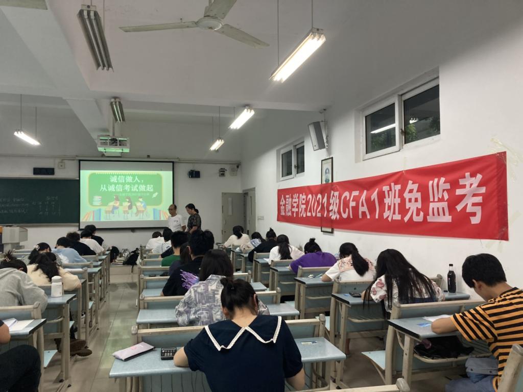 “免监考”诚信考试已在我校持续开展二十余年,是落实立德树人根本任务的有效举措,在多个学院多个班级留下实践印记,工商学子用言行坚守诚信,用行动做社会主义核心价值观的坚定信仰者、积极传播者和模范践行者。21CFA1班37名同学在共同观看《“免监考”+“诚信档案” 考试思政二十年的探索与实践》视频后,对“免监考”诚信考试的意义、实施情况有了更加全面的了解,纷纷表示支持,愿意参加到“免监考”诚信考试中来。考试前,他们自愿签订《诚信考试承诺书》;考试中,他们严格遵守“免监考”注意事项,认真答题,诚信应考,整个考试过程秩序井然。