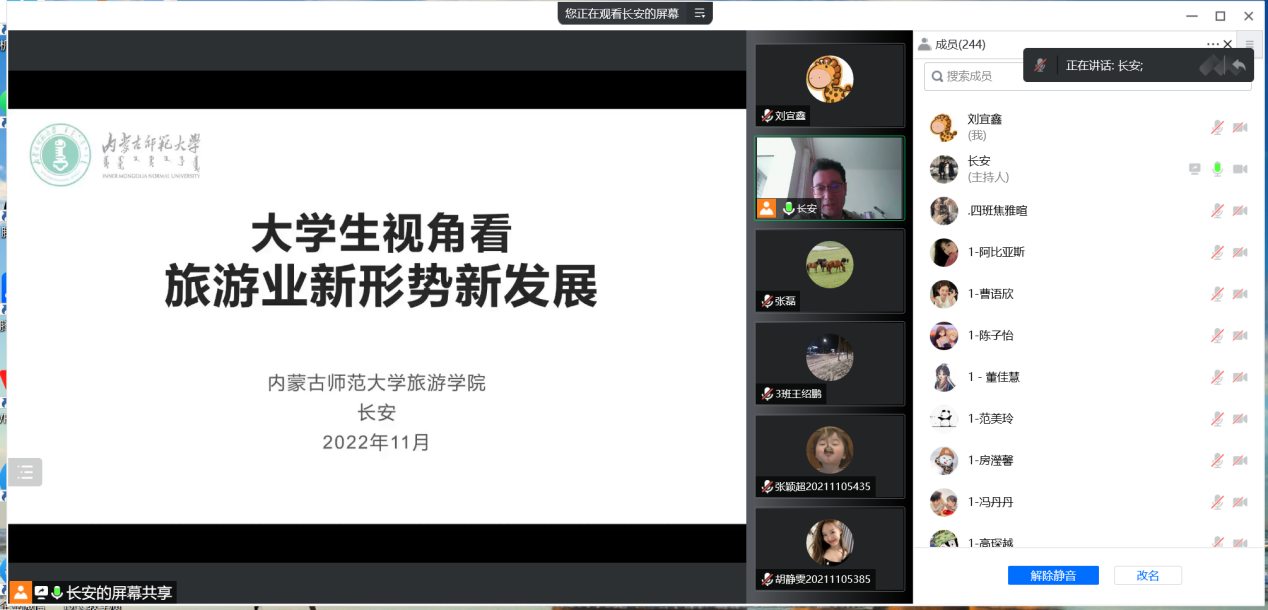 为丰富返乡学生学习生活,让学生明确学业发展方向,鼓励学生返乡后继续努力学习,进一步保障线上教学质量,12月1日下午,beat365邀请旅游学院院长、博士生导师长安教授为beat365旅游管理专业师生带来《在校大学生视角谈旅游业新形势新背景》讲座。beat365院长武海燕、副院长张磊、相关教师以及2021、2022级ISEC旅游管理专业全体学生参加了本次讲座,讲座由张磊副院长主持。