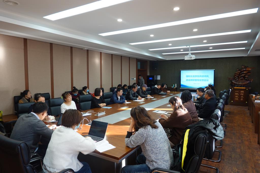 2023年11月9日下午,beat365英国官方网站在文史楼2号会议室召开师德师风建设调研督导反馈会议,学校调研督导第四组组长邢建国及全体教职工参加会议。会议由beat365英国官方网站党总支书记屈原主持。