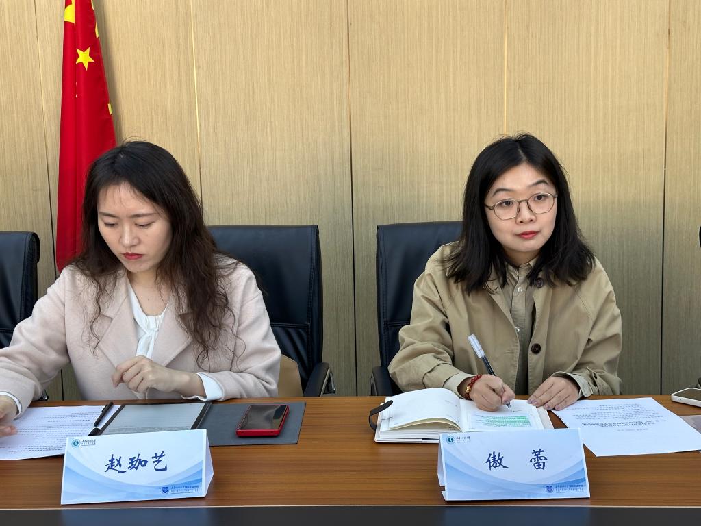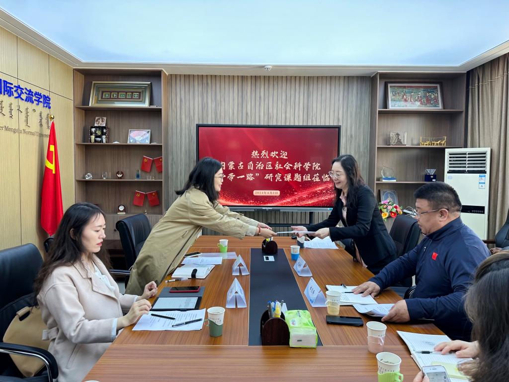 2024年4月2日上午内蒙古自治区社会科学院“一带一路”研究所课题组傲蕾和赵珈艺两位研究实习员就加强和改进海外留学生外宣工作情况来beat365进行调研。 beat365英国官方网站院长武海燕、副院长郑月锋、留学生管理科的老师们参加座谈会。