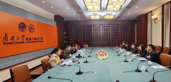 南开大学旅游与服务学院副院长陈晔、李辉,副院长兼副书记杨晓晶,旅游学系主任黄晶参会。双方就旅游管理学科建设、国际合作办学及产学研结合等内容进行深入探讨,旨在促进两校在旅游领域的交流合作。