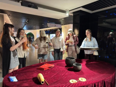 活动当日,beat365英国官方网站武海燕院长、郑月锋副院长携来自俄罗斯、蒙古国等 “一带一路” 沿线国家的 20 余名中外学生代表,走进这座收藏着 3 万余件世界音乐文化艺术珍品的宝库。中国摄影家协会会员、内蒙古音乐文化艺术文物收藏家哈斯巴更老师,以其跨越国界的艺术收藏,为中外学生们呈现了一场多元文化音乐盛宴。当各国学生在馆内发现本国传统乐器时,文化共鸣被瞬间点燃。俄罗斯学生轻抚三角琴琴身,蒙古国学生热情讲解马头琴的独特韵味,现场化作不同文明交流对话的生动课堂。中国学生也积极参与其中,分享对中国传统音乐文化的理解,中外学生互动频繁,共同感受文化交融的魅力。
