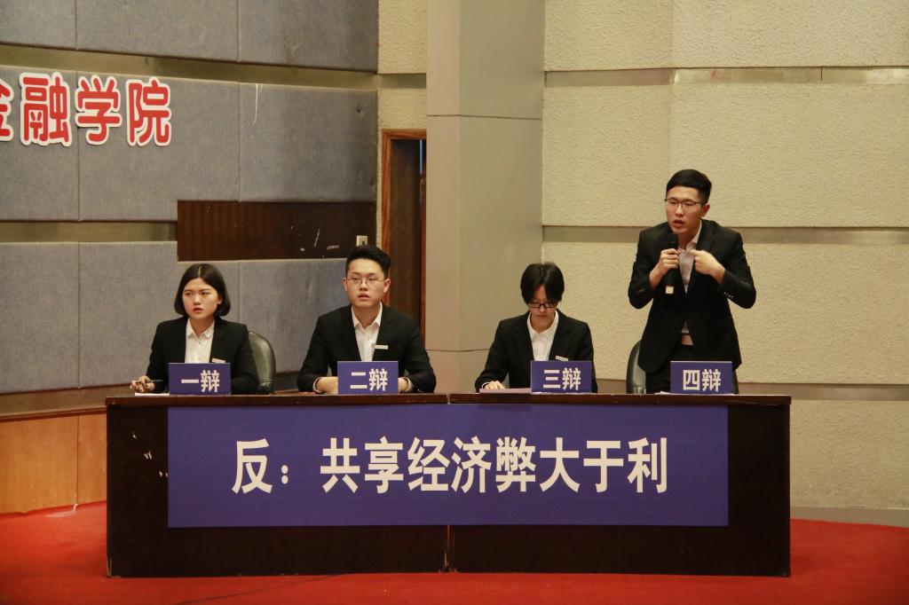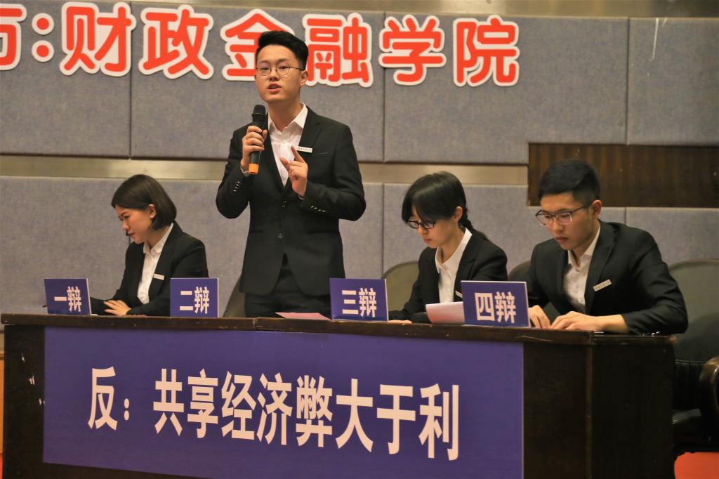 进入决赛的是财政澳门信誉最好十大平台辩论队与环境与资源学院辩论队。双方就“共享经济利大于弊/弊大于利”展开辩论。比赛伊始,作为正方的环境与资源学院开宗明义,通过分析市场现状和共享经济发展趋势阐明了“共享经济利大于弊”的观点。我方辩手则提出了共享经济会提高社会成本,占用社会资源的观点,并从另外一个角度剖析共享经济的蓬勃发展容易导致恶性竞争从而破坏市场规则,影响经济的正常运行,进而论证了“共享经济弊大于利”的论点。在随后的自由辩论与总结陈词环节,双方辩手你来我往、旁征博引,以沉稳冷静、妙语连珠的表现获得了在场观众与评委的阵阵掌声。